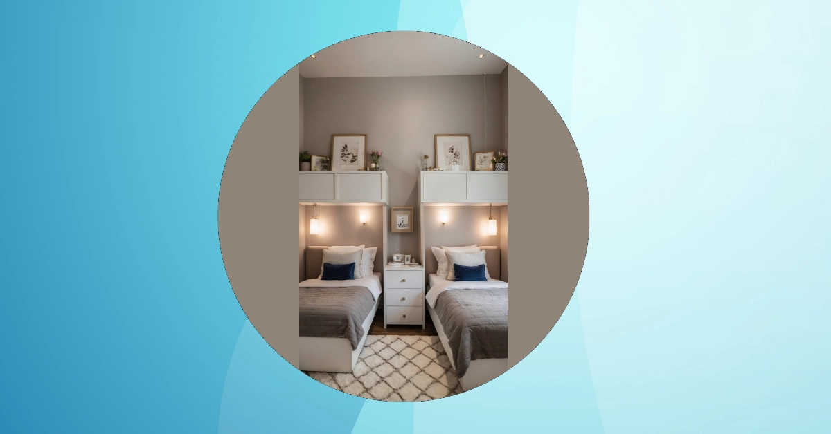And let’s be real, this isn’t just a bedroom; it’s a sleepover headquarters, ready for all your gossip sessions and late-night talks. Each bed gets its own personal spotlight (literally, with those awesome lamps!) so you can totally stay up reading that last chapter while your buddy snores peacefully. The comfy blankets and fluffy rug just scream “dive in and relax.” So, if you’re ever thinking about squeezing more fun into a smaller room, this spot proves you don’t need a mansion; you just need some smart ideas and maybe a really good ‘do not disturb’ signal for your side of the room!