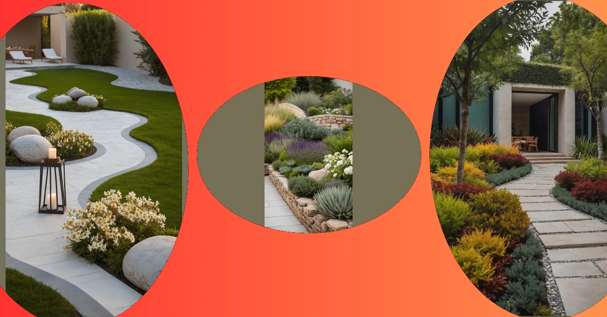 Check out this awesome garden! It’s proof you don’t need a sprawling estate to create something totally stunning. See that curvy path? It’s not just a walkway; it’s a clever trick to make the garden feel bigger, kind of like how a striped shirt can make you look taller. And those smooth, giant pebbles? They’re just chilling there, looking all zen amongst the perfectly green grass, showing that even small spaces can have big personality. It’s like this garden whispered, “I might be small, but I’ve got style!”