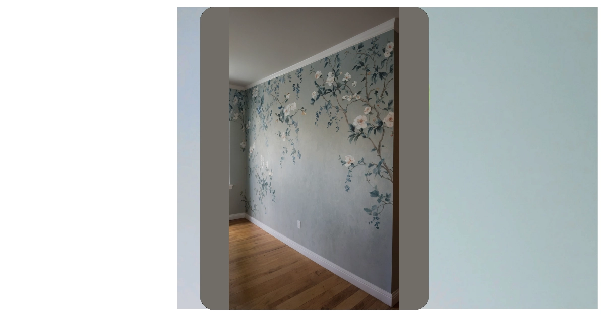 And those gorgeous flowers? They look so real, you almost want to lean in and sniff them, just to make sure they’re not going to surprise you with a sneeze! This isn’t just a pattern; it’s like having your own personal, super chill art gallery right in your room. Imagine waking up to that instead of a plain old wall – suddenly, even Monday mornings might feel a little less ‘ugh.’ It’s like your wall decided to wear its fanciest outfit, complete with elegant floral accessories. Seriously, with a hand-painted wall pattern this beautiful, who needs a screensaver when your entire room is a masterpiece?