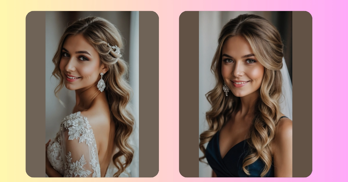 Ever wonder how brides look so effortlessly glamorous without their hair doing a total meltdown mid-vows? Well, feast your eyes on this picture-perfect example! This gorgeous look, with its soft, flowing waves and elegant half-up style, practically screams ‘I woke up like this… after my amazing hairstylist worked magic!’ It’s the kind of bridal hair that stays put through happy tears, enthusiastic hugs, and even that crazy chicken dance at the reception. Plus, a little veil always adds that extra sprinkle of ‘I’m getting married!’ charm, right?